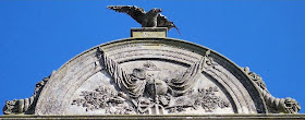 È da sottoporre ad analisi il bassorilievo del timpano nello pseudo-frontone (altra soluzione estetica grecizzante è costituita dalle pseudo-colonne ioniche e corinzie).